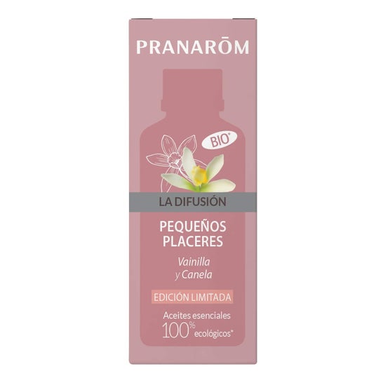 Olio essenziale per diffusore, edizione limitata, con una fragranza dolce di note di vaniglia e cannella. Questo olio di aromaterapia apporta momenti di piacere e godimento ai sensi. L'aroma di vaniglia ha la capacità di calmare, e la cannella aiuta a combattere la fatica mentale. Tutti i suoi ingredienti provengono da agricoltura biologica.
