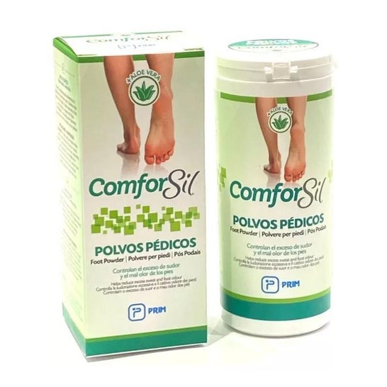 Le polveri per piedi Prim Comforsil sono ideali per controllare il sudore ed eliminare l'odore dei piedi. La sua formula contiene aloe vera, nota per le sue proprietà antibatteriche e antinfiammatorie, insieme ad altri ingredienti assorbenti che mantengono i piedi asciutti e regolano la produzione di sudore. Questo crea un ambiente sfavorevole ai microrganismi che causano i cattivi odori, mantenendo i piedi freschi e privi di odori sgradevoli. Inoltre, l'aloe vera fornisce una sensazione rinfrescante e lenitiva, garantendo un comfort per tutto il giorno. Se cercate una soluzione efficace e duratura per combattere la sudorazione eccessiva e l'odore dei piedi, Prim Comforsil Foot Powder è la scelta migliore. Godetevi freschezza e comfort a ogni passo.
