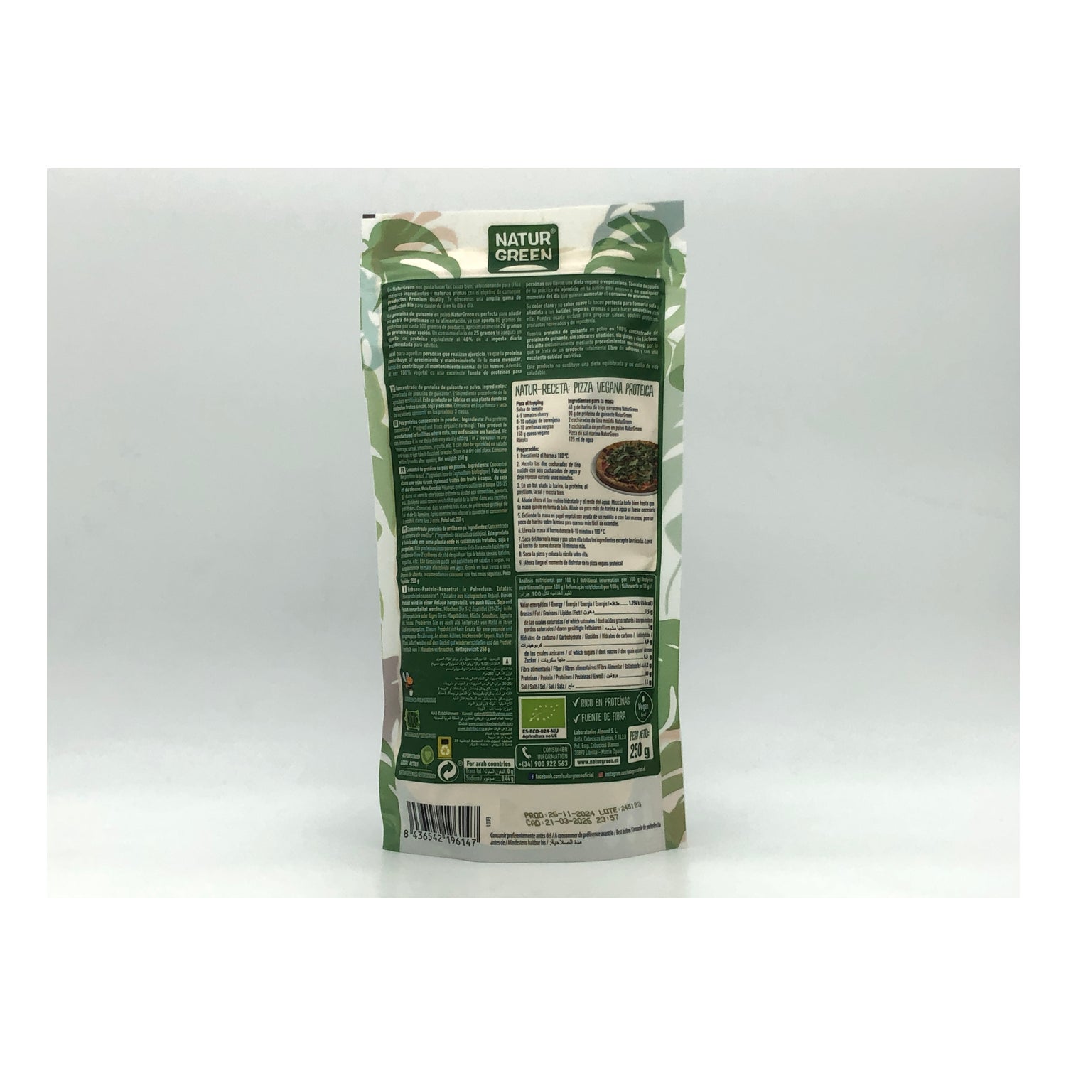 Proteina Naturgreen a base di concentrato di piselli. Contiene 250gr di prodotto nella confezione. Si tratta di un integratore proteico che fornisce una serie di amminoacidi che contribuiscono al corretto funzionamento dell'organismo. Senza glutine e senza zuccheri aggiunti. Fornisce il 40% dell'apporto proteico giornaliero per un adulto. Contiene elementi necessari per rafforzare il sistema immunitario e l'assorbimento delle vitamine. Si raccomanda il suo uso a persone con regime dietetico severo. Uso consigliato per sportivi. Ideale per bambini e giovani in crescita. Non adatto alla gestione dei neonati. Non si suggerisce l'uso di questo prodotto a persone con gravi alterazioni metaboliche. Non utilizzare come unica fonte di proteine. In caso di reazioni avverse rispetto a quelle attese, consultare il medico o il nutrizionista di fiducia.