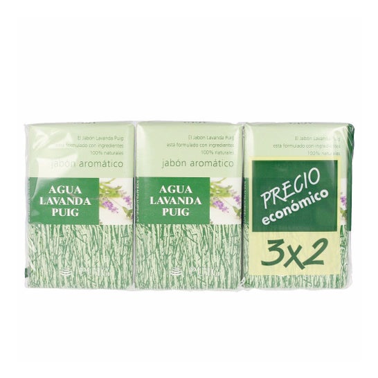Pacco composto da 3 saponi di Acqua di Lavanda di Puig, tutti con il mitico aroma del marchio e con ingredienti 100% naturali che, oltre a fornire una pulizia profonda alla pelle, lo fanno rispettando l'equilibrio della stessa per offrire una cura extra. Il suo profumo è un punto in più da considerare poiché persiste sulla pelle per ore offrendo una sensazione di pulizia e freschezza molto piacevole.