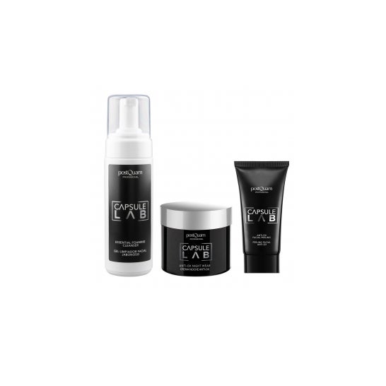 Dopo che il Pack Capsule Lab Rutina Notte si basa su ingredienti di origine vegetale per ottenere una pelle più idratata, protetta e luminosa. Composta da una crema giorno, una notte, un siero riparatore, un olio viso, un sapone liquido e uno scrub viso antiossidante.