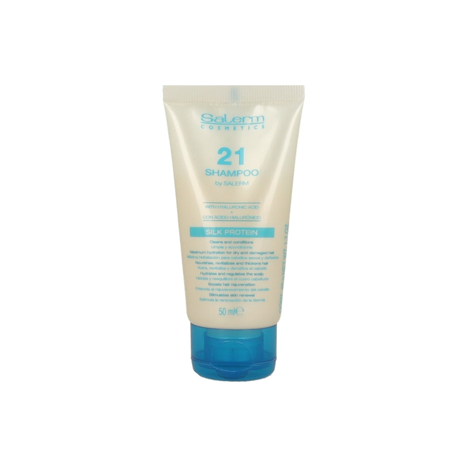 Salerm 21 Shampoo Silk Protein 50 ml per capelli secchi e danneggiati è uno shampoo condizionante che pulisce delicatamente e aiuta a riparare in profondità. La sua formula con proteine della seta agisce sulla fibra capillare e apporta idratazione e nutrimento fin dalla prima applicazione.
