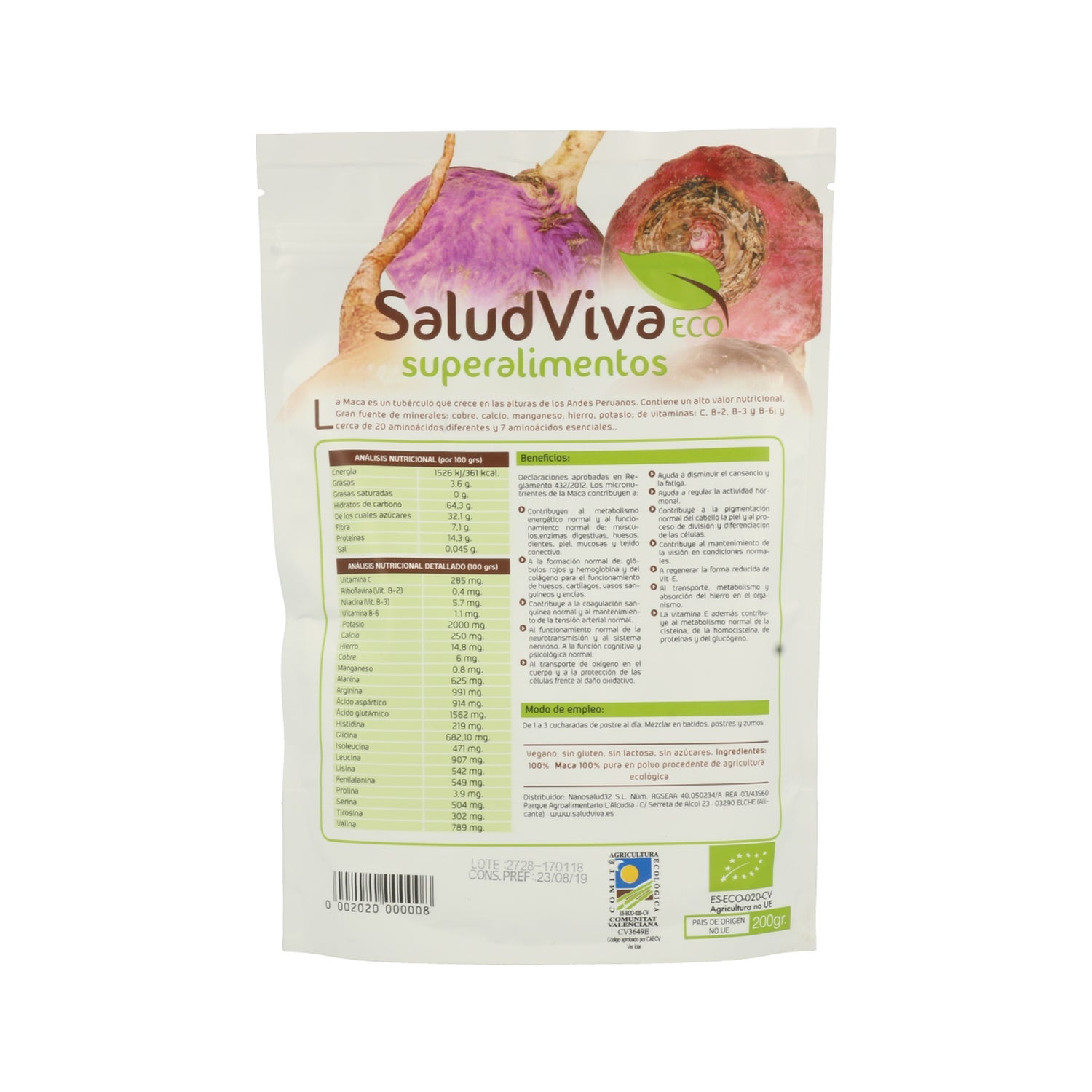 Salud Viva Maca Premium Eco 200g è un superfood progettato per aumentare l'energia e la vitalità in modo naturale. Questo integratore è ideale per persone attive e sportivi che cercano di migliorare le loro prestazioni quotidiane e combattere la fatica fisica e mentale.