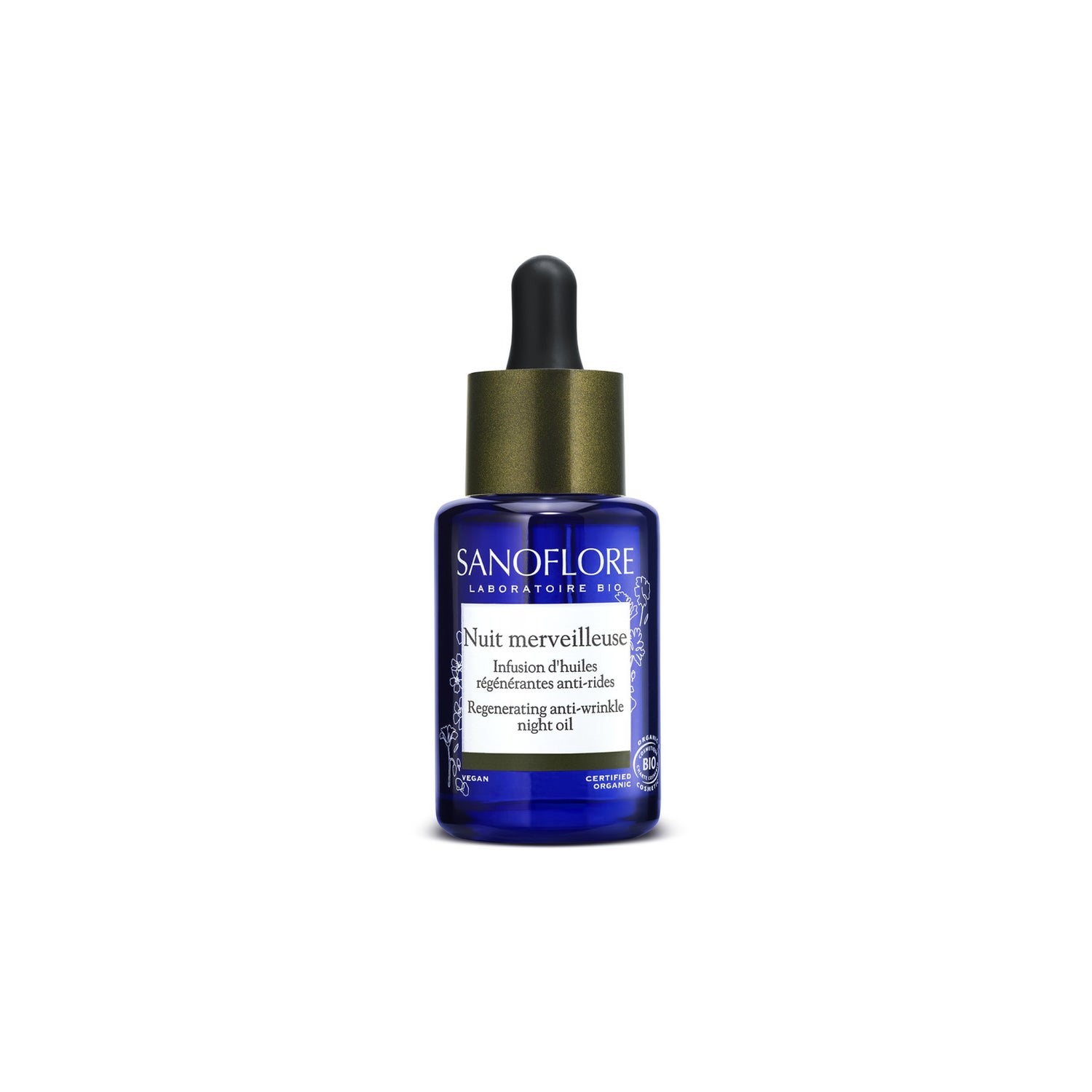 Sanoflore Nuit Merveilleuse Bio 30ml è un olio secco rigenerante per il viso che agisce durante la notte per aiutare a combattere i segni dell'invecchiamento. Formulato con oli essenziali di Melissa e Pelargonium da agricoltura biologica certificata, aiuta a ridurre le linee sottili e le rughe e a levigare i tratti per ravvivare la luminosità della pelle. Inoltre, questo trattamento notturno anti-età aiuta a riparare e rivitalizzare le cellule, nonché a rigenerare e levigare la pelle.La fragranza di agrumi, iris e cedro favorisce una sensazione di benessere.Texture non grassa che viene assorbita immediatamente dalla pelle.Adatto per pelli sensibili.Dermatologicamente testato.Adatto alla pelle. Dermatologicamente testato.100% ingredienti naturali.100% naturale.Vegan.Made in France.