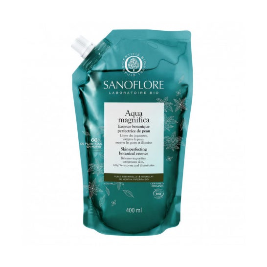 Sanoflore Aqua Magnifica Eco-Refill 400ml è una lozione purificante certificata biologica che aiuta a riequilibrare la pelle da mista a grassa.La sua formula è composta da 9 oli essenziali (santoreggia di montagna, timo timolo, origano verde, citronella, melissa, citronella di Ceylon, rosmarino e chiodi di garofano) provenienti da agricoltura biologica, che aiutano a ridurre le imperfezioni, ad affinare la grana della pelle e ad eliminare l'eccesso di sebo.Il formato Eco-Refill è realizzato con il 66% di plastica in meno rispetto al flacone, contribuendo a limitare l'impatto sull'ambiente.Il formato Eco-Refill è realizzato con il 66% di plastica in meno rispetto al flacone, contribuendo a limitare l'impatto sull'ambiente.Ingredienti al 99% di origine naturale.Vegano, senza ingredienti di origine animale.Prodotto in Francia.