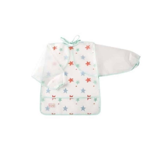 Saro Bavaglino con Maniche 6M+ 1641 è un bavaglino di grande dimensione che offre comfort e funzionalità. Il suo design include maniche elastiche, che permettono una maggiore libertà di movimento durante l'uso.