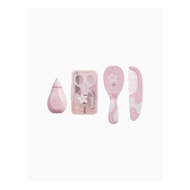 Set di 7 accessori appositamente progettati per la cura e l'igiene dei più piccoli. Contiene un flacone contagocce, un aspiratore nasale, un pettine, una spazzola con setole naturali, delle pratiche forbici, un tagliaunghie e quattro lime per unghie. Include un astuccio organizer da portare ovunque, con un tessuto impermeabile di colore rosa. Sono prodotti durevoli realizzati con materiali resistenti.