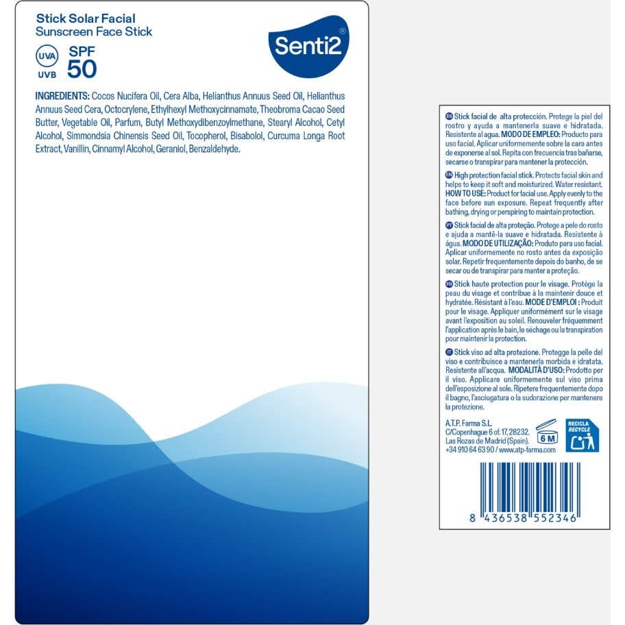 Senti2 Stick Solare Viso SPF 50 20g è un prodotto progettato per offrire una protezione solare efficace. Con un indice di protezione SPF 50, questo stick si distingue per la sua resistenza all'acqua, garantendo la sua efficacia anche durante attività acquatiche. La sua formula idratante contribuisce a mantenere la pelle morbida, evitando la formazione di macchie.