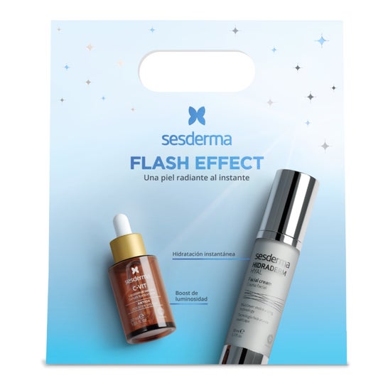 Pelle luminosa e idratata all'istante. Combina Vit C con Acido Ialuronico.