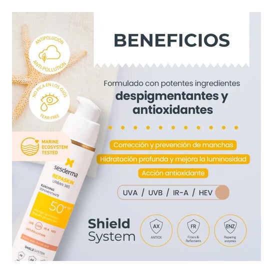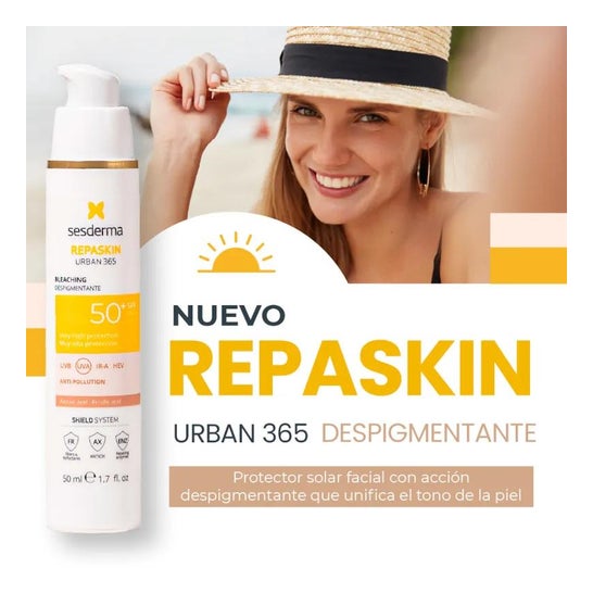 Sesderma Repaskin Urban 365 Dispigmentante SPF50+ 50ml è un protezione solare dispigmentante che aiuta a uniformare il tono della pelle e previene l'invecchiamento cutaneo da foto e ripara il danno cellulare.