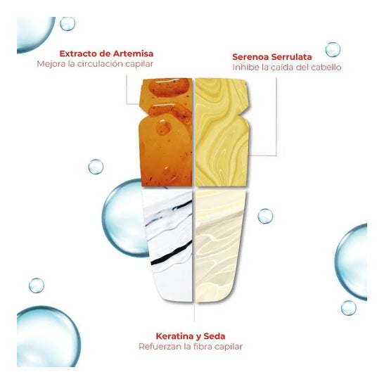Butil avocodato, mugwort abrotanum, estratto sabalico, frumento, seta idrolizzata, cheratina idrolizzata, soia idrolizzata, complesso multivitaminico.