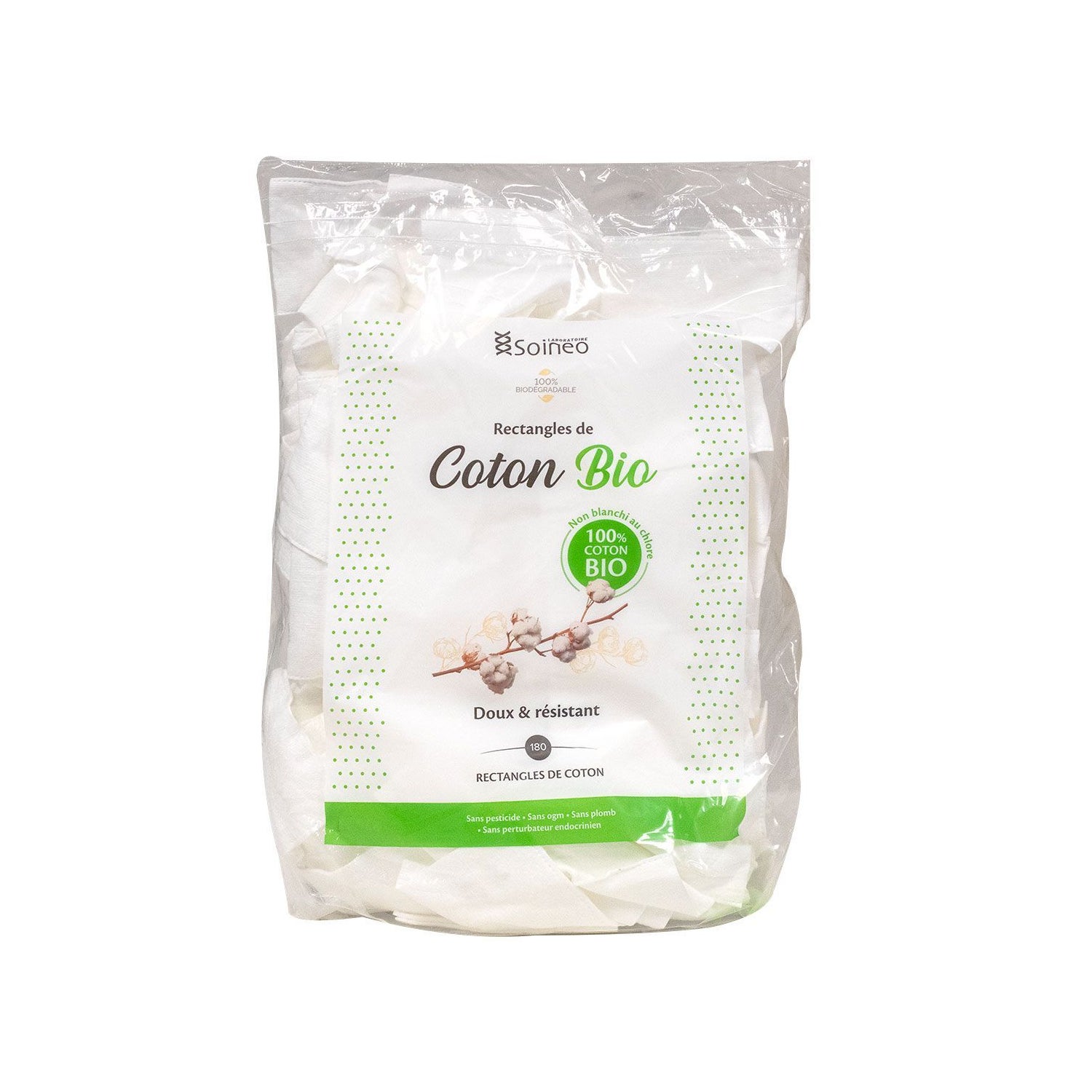 Soineo rettangoli di cotone Bio 180 pz sono rettangoli di cotone Bio di fabbricazione francese. Aiutano al cambio e all'igiene del bambino e contribuiscono alla pulizia cutanea degli adulti. Sono molto morbidi e resistenti e non contengono cloro. 100% naturale e organico.