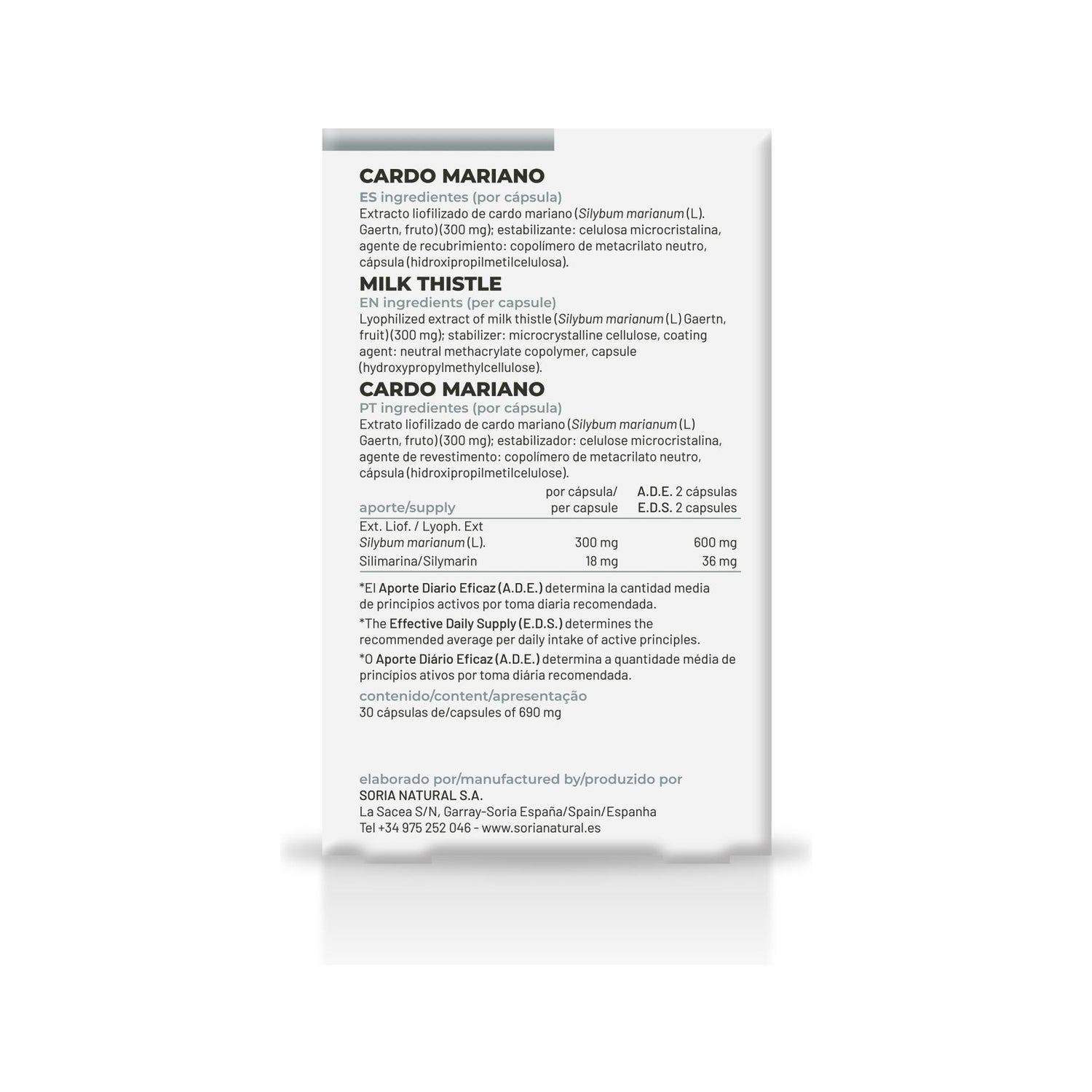 Soria Natural 11-S Il Cardo Mariano 30càps aiuta a purificare e disintossicare il corpo, perfetto per i casi di intessicazione, cirrosi, disturbi epatici o alcolismo. Un integratore alimentare che non può mancare in casa quando ne avete bisogno. Con esso, migliorerete la condizione generale del vostro corpo e si sentono bene come nuovo;