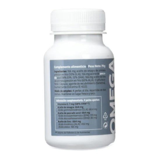 Integratore alimentare a base di Omega 3, 6 e 9 provenienti da olio di pesce, borragine e semi di lino, che contribuisce a controllare i livelli di colesterolo e trigliceridi affinché sia il sistema cardiovascolare che il sistema immunitario funzionino correttamente. Inoltre, grazie al suo effetto antiossidante e antinfiammatorio, cura e protegge la pelle e i tessuti, offrendo maggiore elasticità e un aspetto più giovane.