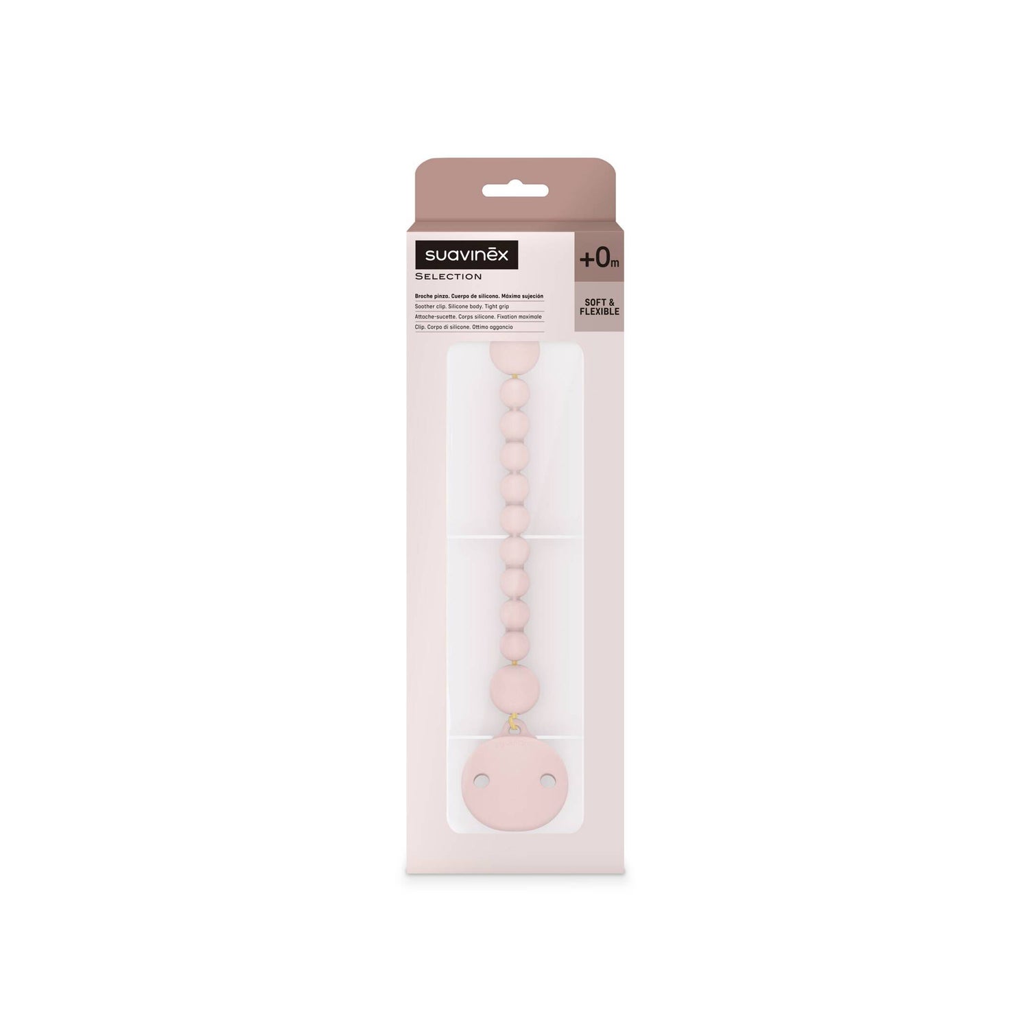 Suavinex Cadenita Colour Essence Nude è un pratico clip progettato per ciucci. La sua funzione principale è quella di fissare i ciucci ai vestiti del bambino, evitando che cadano, si sporchino o si perdano.