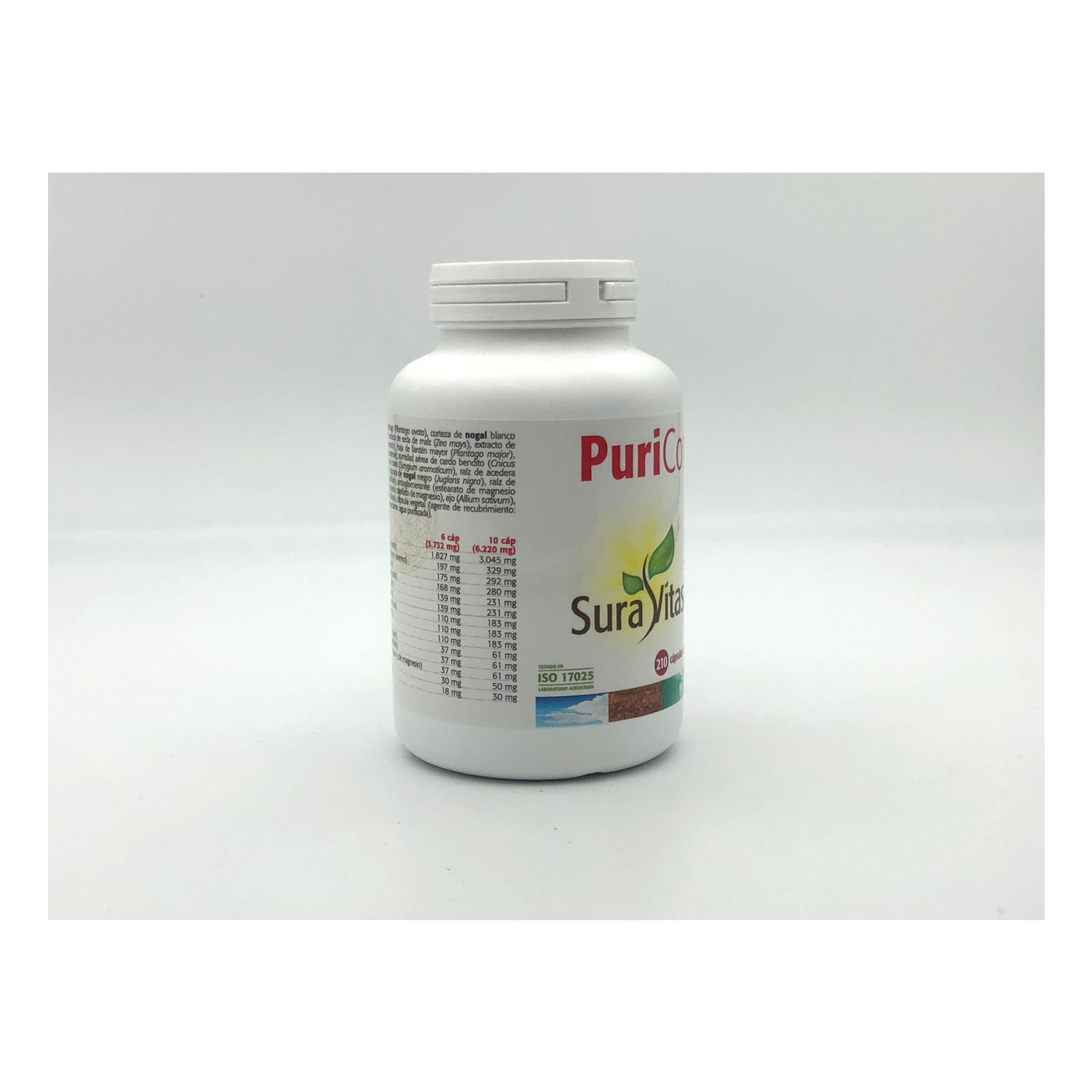 Sura Vitasan PuriCorp è a base di polvere di buccia di psillio (Plantago ovata), corteccia di radice di noce tenera, estratto di seta di mais, estratto di semi di pompelmo (4:1), fiore di trifoglio rosso (Trifolium pratense), piantaggine lanceolata, radice di Rumex crispus, chiodi di garofano, cardo benedetto (Cnicus benedictus), estratto di buccia di noce nera (4:1), radice di Echinacea angustifolia, bentonite, acido caprilico e aglio inodore (10.000 mcg di allicina/g).000 mcg di allicina/g). Tutti questi componenti rafforzano il sistema immunitario e purificano l'organismo, consentendogli di eliminare tutte le tossine.