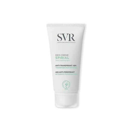 La crema antitraspirante SVR Spirial offre un'azione deodorante che regola la traspirazione e assorbe l'umidità della pelle, grazie all’azione sudo-regolatrice dei Sali d’alluminio, prevenendo la formazione di sudore eccessivo nei piedi, mani, ascelle, pieghe, inguine, cuoio capelluto o viso.