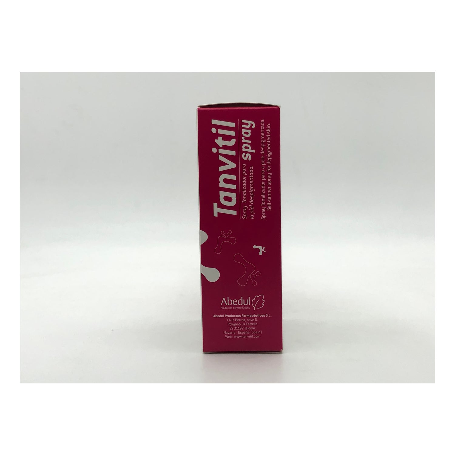 Lo Spray Tanvitil Toner è il trattamento più rapido ed efficace per mascherare le aree depigmentate della pelle. La presentazione spray di Tanvitil è appositamente studiata per applicare il prodotto su grandi macchie, specialmente quelle causate dalla vitiligine.