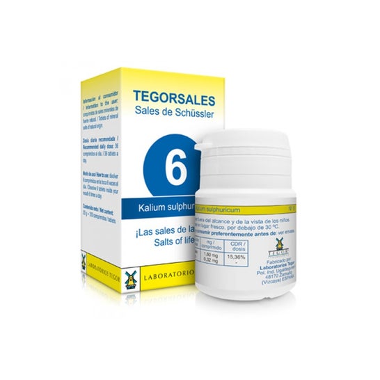Integratore alimentare che aiuta a espellere i liquidi in eccesso dal corpo. Inoltre, riduce la quantità di acqua che assorbe l'intestino crasso, agendo come un purificatore o disintossicante indiretto. La nº6 è conosciuta come "il sale anti-tossine" e/o il sale contro i raffreddori e le infiammazioni. Aiuta a riparare i danni alla pelle e alle unghie. Formato da 350 compresse.