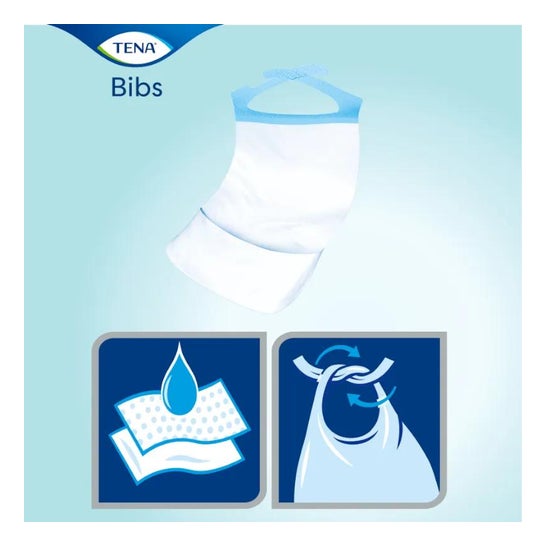 I pettorali Tena sono pettorali usa e getta per adulti che garantiscono la massima igiene durante i pasti. Grazie alla tasca frontale e alle cinghie posteriori su un lato della pettorina, si può facilmente regolare al collo della cena.