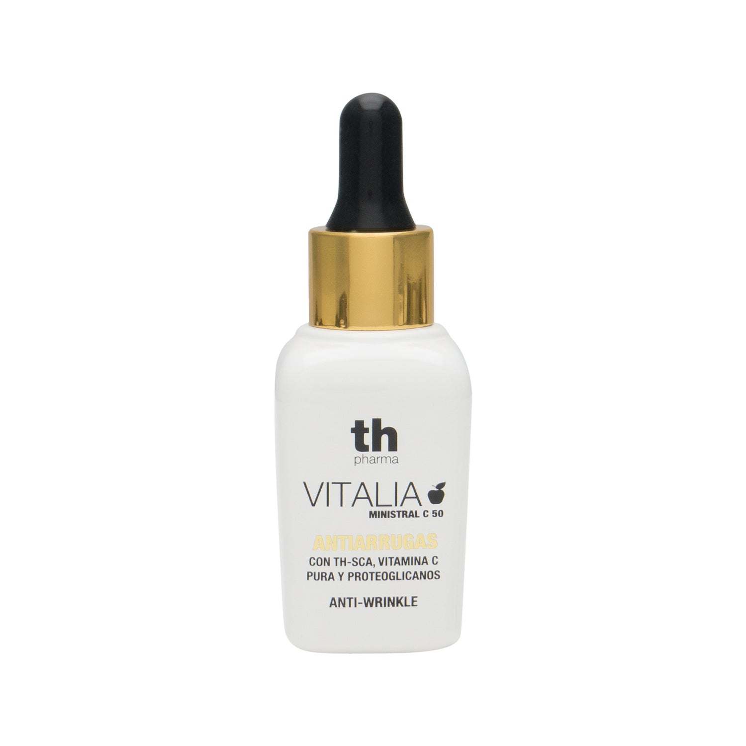 Th Pharma Vitalia Ministral Antirughe C50 20ml è un trattamento antirughe in forma di crema formulato con TH-SCA, proteoglicani e pura vitamina C che genera una migliore protezione della pelle dall'interno contribuendo a combattere i danni causati da agenti esterni