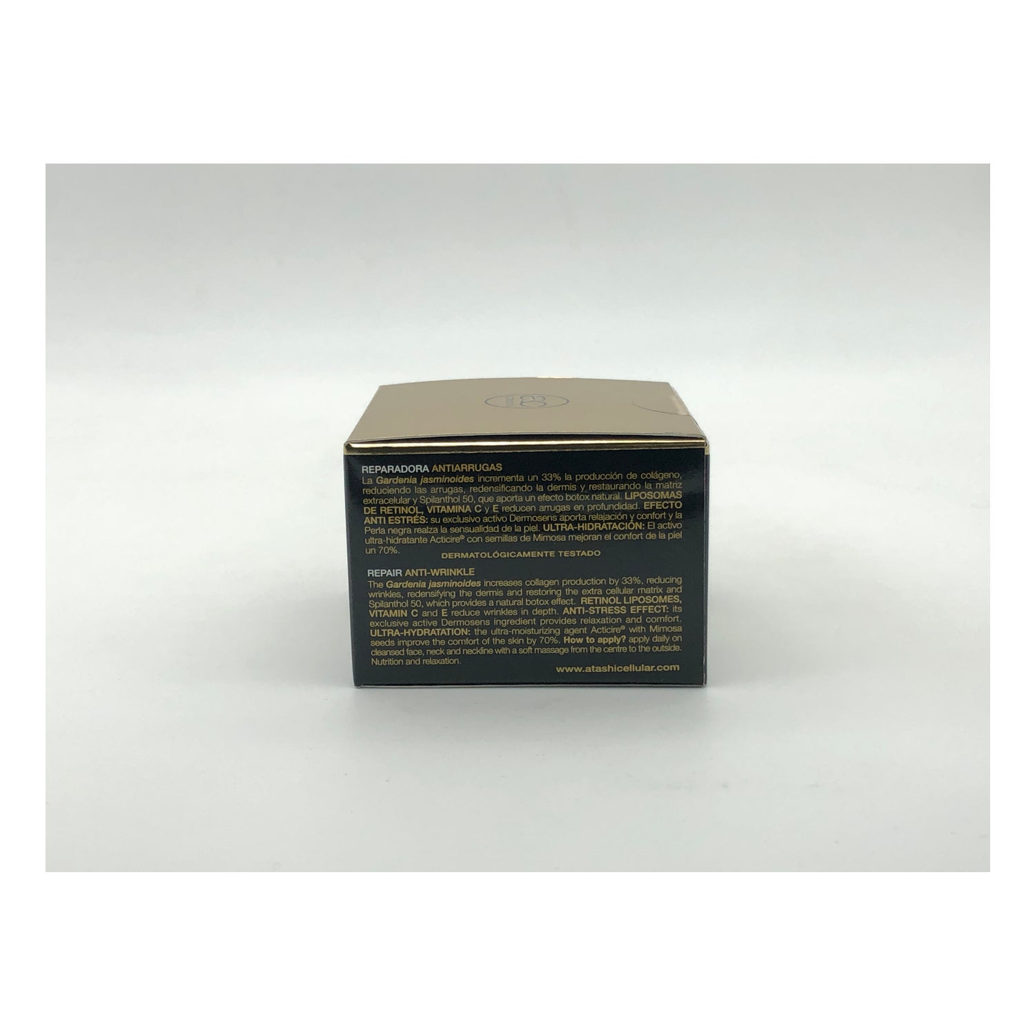 Atashi® Rrughe Repair è una crema anti-età potente ed efficace formulata con Spilanthol e Retinolo per ottenere un effetto lifting. Inoltre possiede le proprietà delle cellule staminali del gelsomino di gardenia e della perla nera, per ottenere un risultato maggiore.