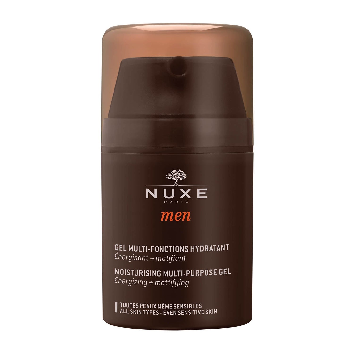 Il gel idratante multifunzionale Nuxe Men offre un trattamento viso a base di estratti di quercia, carpe e acido ialuronico. Questo gel morbido idrata, ridona energia alla pelle e la matifica nelle zone a tendenza grassa.