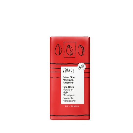 Marzapane all'amaretto con cioccolato fondente biologico Vivani. Una combinazione deliziosa fatta esclusivamente di miele e mandorle biologiche e arricchita con vero amaretto, si scioglie con la copertura di cioccolato fondente (60% di cacao). Senza plastica e certificato Rainforest.