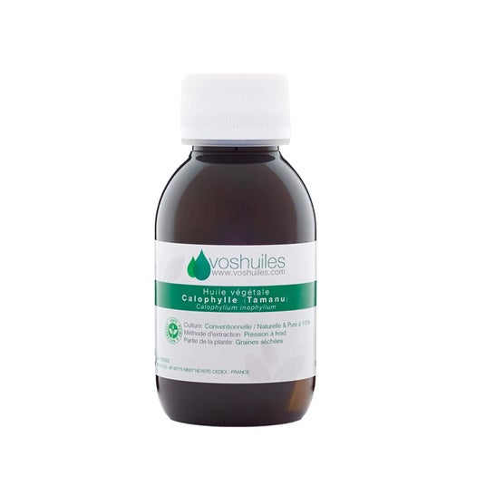 L'olio vegetale di Voshuiles Calophyllum (Tamanu) è un olio vegetale eterogeneo di colore verde scuro. Utilizzato principalmente come ingrediente di miscele per applicazioni cutanee, deve essere leggermente riscaldato per ottenere un olio fluido e omogeneo.