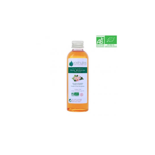 L'Olio di Rosa Mosqueta Biologico Voshuiles è un olio vegetale ricco di acidi grassi essenziali. Si ottiene dalla spremitura a freddo dei semi presenti all'interno del frutto della rosa canina. Certificato da agricoltura biologica FR-Bio 01.