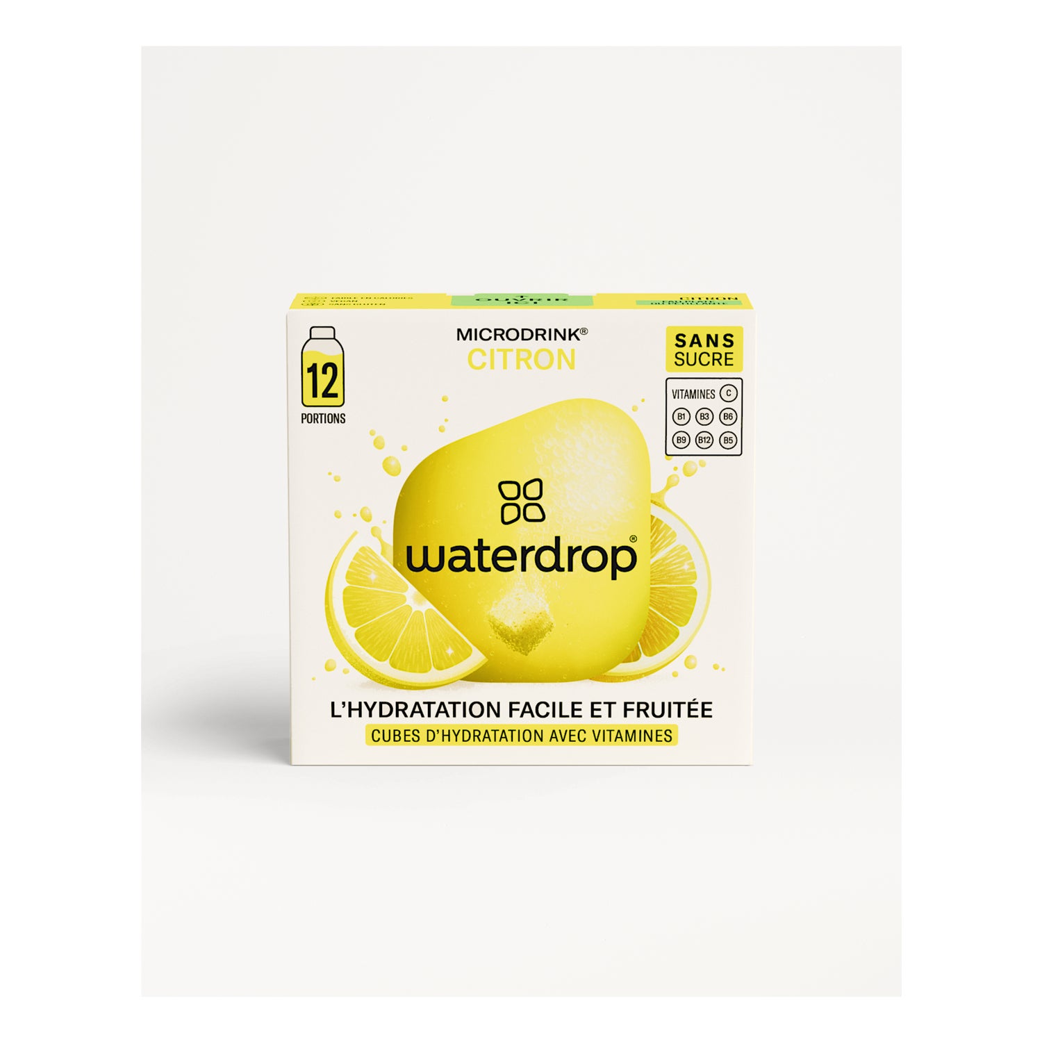 Ogni scatola contiene 12 cubi, ognuno di 2,1 grammi, che si sciolgono facilmente in acqua. La formula di Waterdrop Microdrink Limone include: