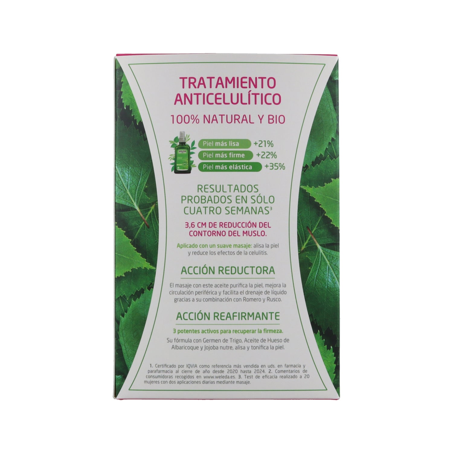 Weleda Olio per la Cellulite di Betulla 2x100ml + Celulicup contiene estratti di foglie di betulla, rosmarino e rusco che aiutano ad attivare il metabolismo della pelle e migliorano la circolazione dei liquidi, contribuendo a trattare la cellulite. È ideale per trattare la pelle a buccia d'arancia, poiché ha un effetto riducente e rassodante.