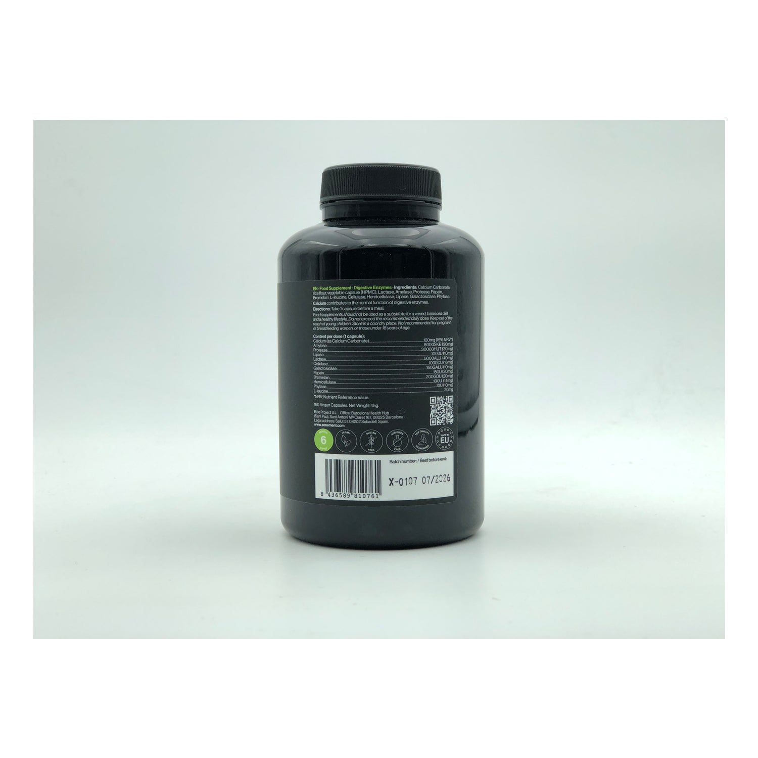 Zenement Digestive Enzymes 180vcaps fornisce un supporto completo con 10 enzimi naturali altamente concentrati. Adatto a tutti i tipi di dieta e facile da usare, questo integratore garantisce una digestione confortevole ed efficiente. Con un flacone da 180 capsule, potrete godere dei benefici per 6 mesi. - 10 Enzimi digestivi - Alta concentrazione - Ampia attività enzimatica - Adatto a tutte le diete