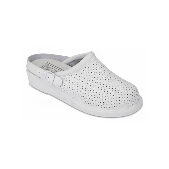 Hankshoes Zueco Relax Bl 43 è progettato per offrire comfort e supporto durante lunghe giornate in piedi, risultando ideale per professionisti sanitari, personale della ristorazione o chiunque abbia bisogno di prendersi cura dei propri piedi al lavoro. Il suo design ergonomico e la suola anatomica riducono la fatica e forniscono una camminata stabile e rilassata, diventando un'opzione di spicco per il benessere lavorativo. Questo zueco si distingue per la sua soletta anatomica antibatterica e la sua realizzazione in materiali leggeri e traspiranti. Questi componenti favoriscono una ventilazione adeguata e evitano l'accumulo di umidità. La sua struttura flessibile e resistente distribuisce il peso in modo uniforme, aiutando a prevenire fastidi a piedi e articolazioni dopo molte ore di utilizzo. Offre comfort, igiene e protezione in ogni passo, migliorando l'esperienza quotidiana.