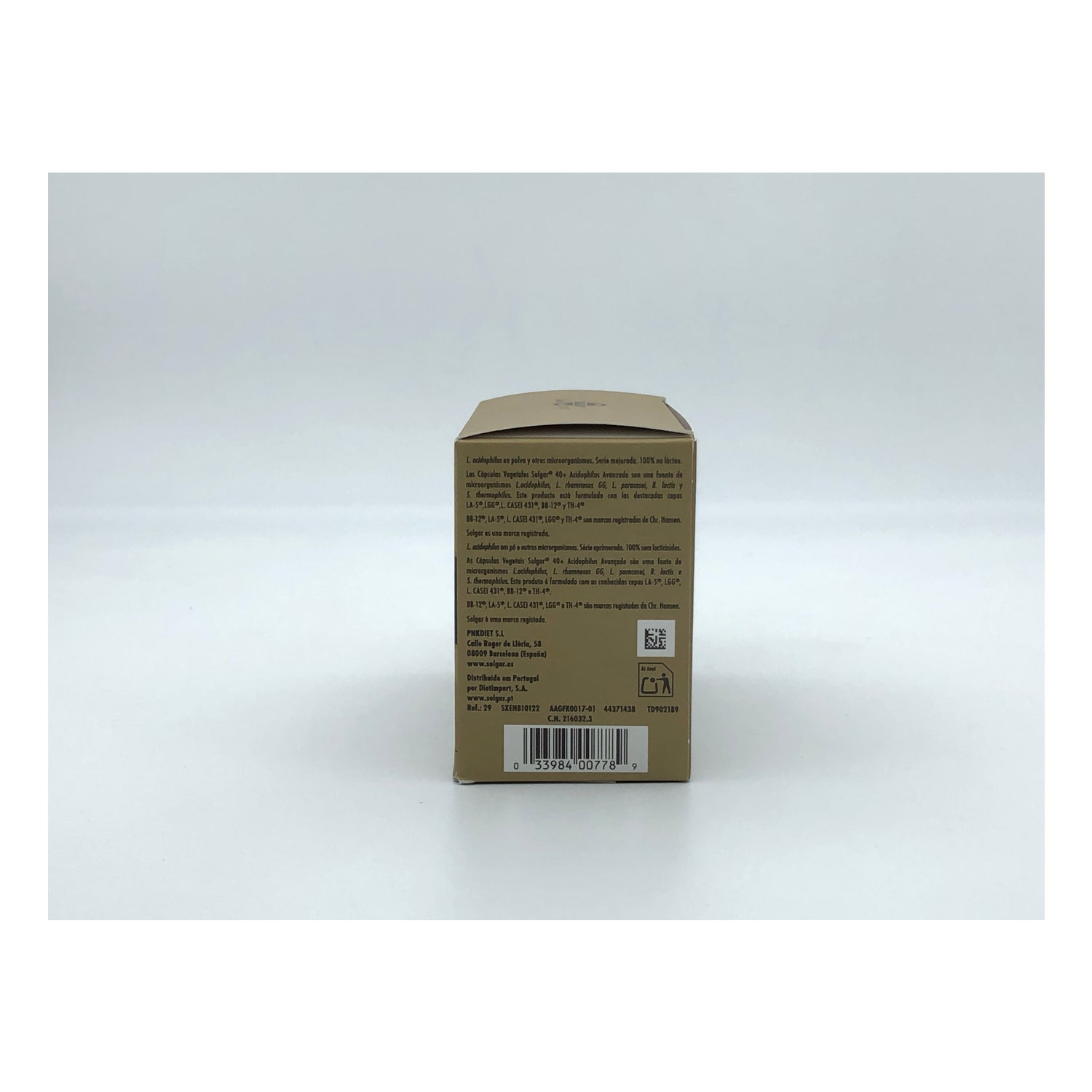 Solgar Advanced 40+ Acidophilus 120 capsules is een veganistisch probiotisch voedingssupplement dat Lactobacillus acidophilus (LA-5®), Lacticaseibacillus rhamnosus GG (LGG®), Lacticaseibacillus paracasei (L. CASEI 431®), Bifidobacterium lactis (BB-12®) en Streptococcus thermophilus (TH-4®) bevat.De 100% zuivelvrije formule helpt de darmflora te ondersteunen en de vriesdroogtechnologie vereist geen koeling en bevat een droogmiddel om het vocht te reguleren.Bevat geen gluten, tarwe, zetmeel, zuivel, soja, gist, conserveringsmiddelen, zoetstoffen of smaakstoffen.