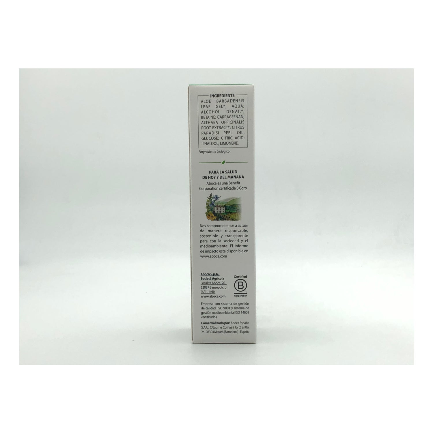 Abocca presenteert Aloë Vera BioGel , een product dat is samengesteld uit een hoog gehalte aan Aloë Vera- bladgel . Dankzij de beschermende en regenererende eigenschappen is Aloë Vera Biogel geschikt voor alle huidtypen en wordt het vooral aanbevolen in gevallen waarin de huid is blootgesteld aan externe agressie zoals blootstelling aan de zon, ontharing ...