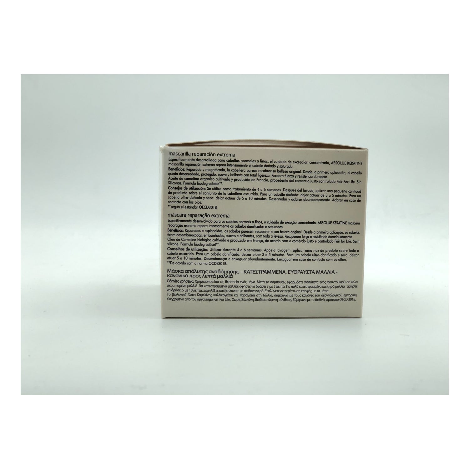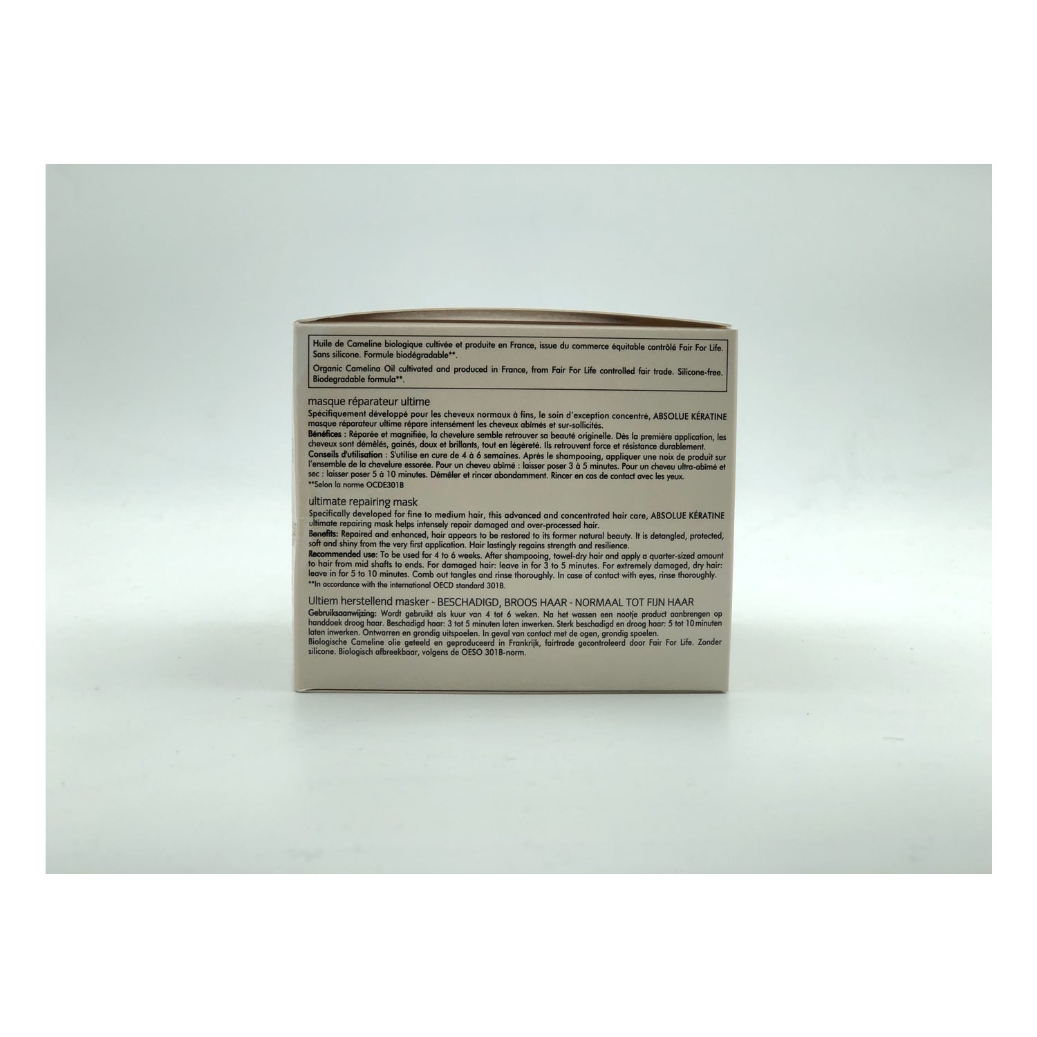 René Furterer Absolue Kératine Extreme Repair Mask Normal Fine Hair 200ml is een plantaardig keratinemasker dat normaal tot fijn haar helpt herstellen met een rijke, crèmige textuur die beschadigd haar herstelt en ontwart met een aangename geur van fruitige, bloemige en oosterse noten en bevat plantaardige keratine die helpt de haarvezels aan te vullen en de textuur te herstellen. Het bevat ook camelina-olie om de hydrolipidenfilm van het haar te helpen herstellen en is siliconenvrij.
