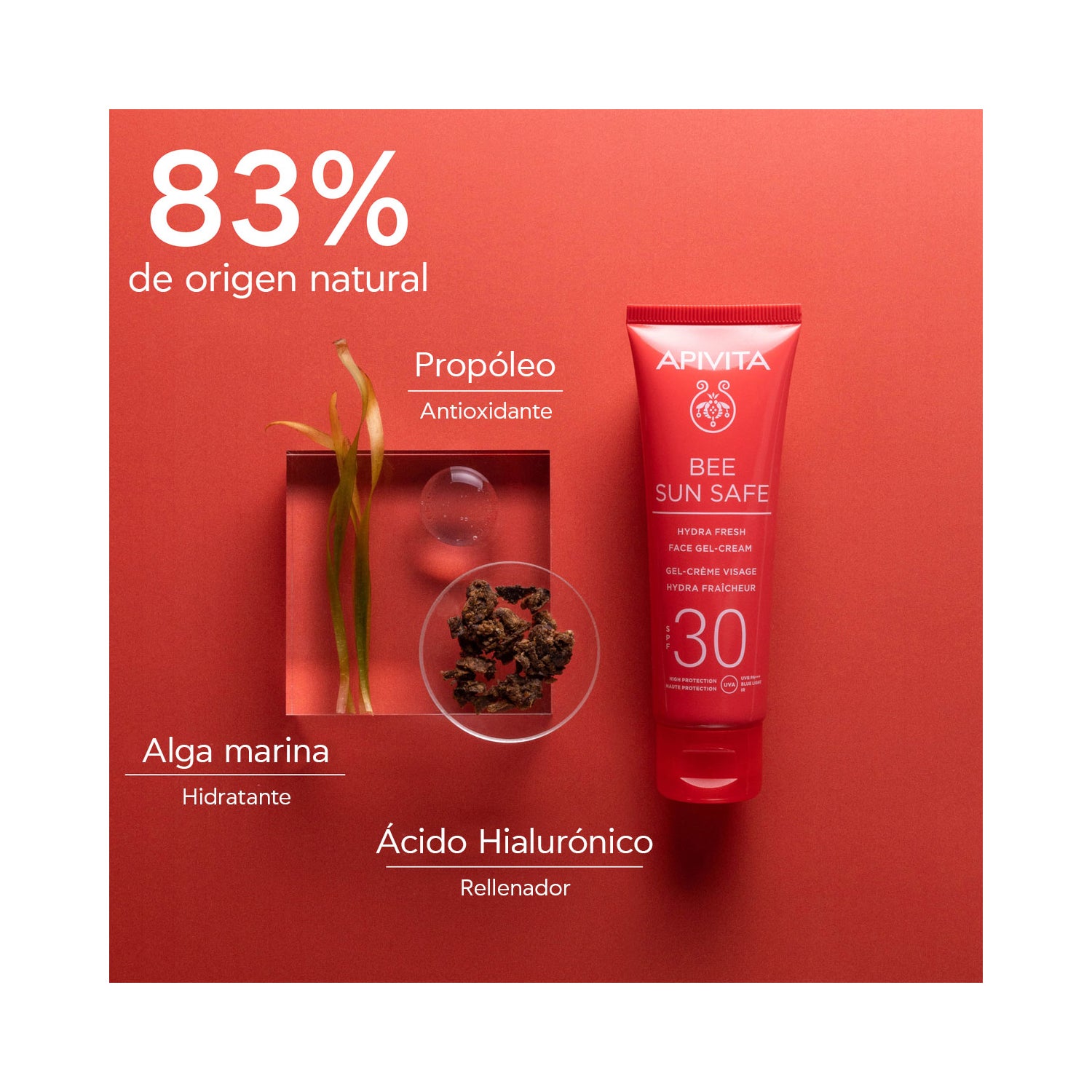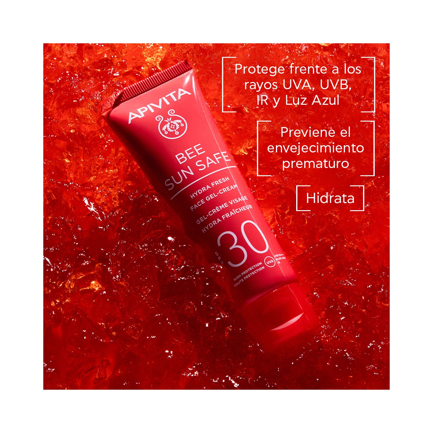 Apivita Bee Sun Safe Hydra Fresh Gel-Crema Facial SPF30 50 ml is een zonnebrandcrème lichte en fluweelachtige, met bescherming tegen UVA, UVB en blauw licht, die bovendien een 2-in-1 werking biedt tegen vlekken en rimpels. Het wordt snel opgenomen en zorgt voor een egale en comfortabele huid.