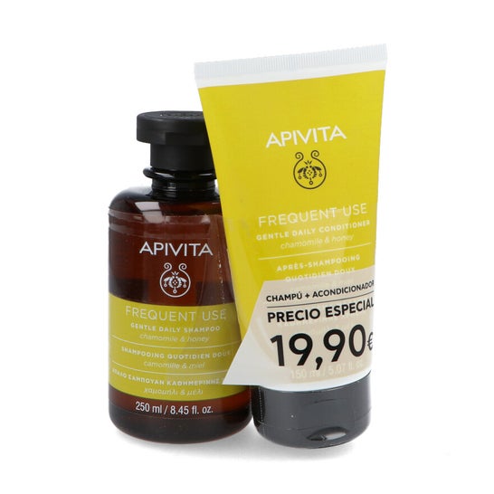 Milde shampoo voor dagelijks gebruik. 93% natuurlijke oorsprong. Reinigt zachtjes. Biedt zachtheid en elasticiteit aan het haar. Helpt irritaties te voorkomen. De milde shampoo voor dagelijks gebruik met kamille en honing is ideaal voor frequent gebruik en geschikt voor alle haartypes: voor extra zachte reiniging, zonder sulfaten, die de natuurlijke flora van de hoofdhuid respecteert. Hydrateert het haar en laat het zacht en flexibel achter, met biologische honing en panthenol. Houdt de hoofdhuid gezond en beschermt tegen irritaties met biologische Griekse kamille- en goudsbloemextracten. Voorkomt gespleten haarpunten terwijl het beschermt tegen externe factoren (vervuiling en warmtestylingtools) met het APISHIELD HS-complex. Verrijkt met biologische essentiële oliën van lavendel en geranium die de hoofdhuid kalmeren en helpen ontspannen. Het water in dit product is vervangen door een tonische en anti-aging infusie van biologische Griekse rozemarijn. Dermatologisch getest. Geformuleerd zonder sulfaten. Conditioner voor dagelijks gebruik 97% natuurlijke oorsprong. Biedt extra zachtheid en flexibiliteit aan het haar. Hydrateert. Voorkomt gespleten haarpunten. De conditioner voor dagelijks gebruik is ideaal voor alle haartypes dankzij de lichte textuur die het haar zacht en levendig achterlaat: hydrateert en verbetert de zachtheid en elasticiteit van het haar met tijmhoning en verzachtende extracten van kamille, salie en sint-janskruid. Geeft zachtheid aan het haar en vergemakkelijkt het stylen met biologische olijfolie en haverproteïnen. Voorkomt breuk en gespleten haarpunten terwijl het beschermt tegen externe factoren (luchtvervuiling en warmtestylingtools) dankzij het APISHIELD SH-complex. Bevordert ontspanning met essentiële oliën van lavendel en geranium. Het water in dit product is vervangen door een tonische en anti-aging infusie van biologische Griekse rozemarijn. Dermatologisch getest. Compatibel met homeopathie.