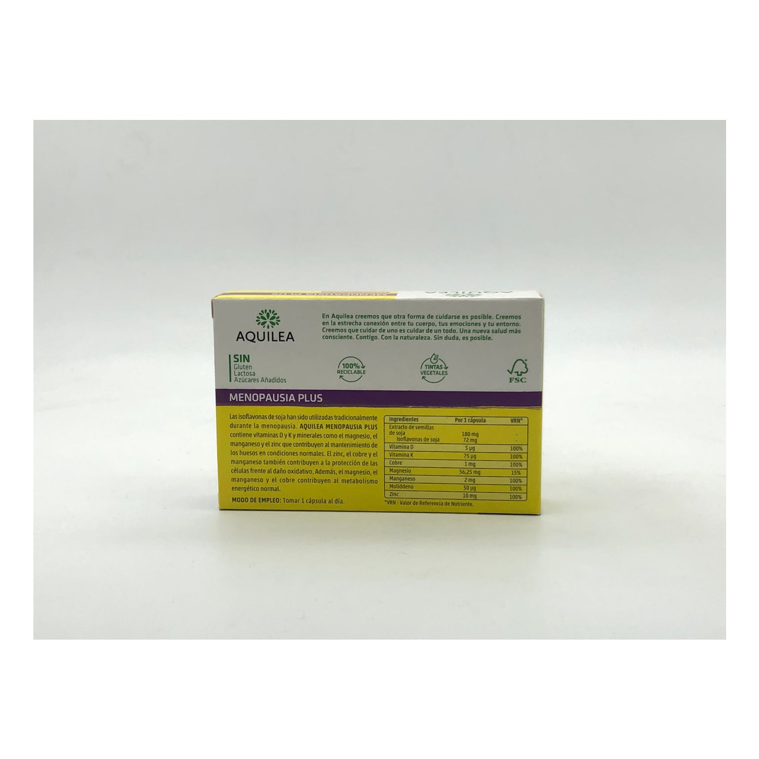 SOJECONCENTRAAT (RIJK AAN ISOFLAVONAS - 180 MG EQUIVALEND MET 72 MG ISOFLAVONEN) - MAGNETISCHE OXYDE (100,1 MG MAGNESIUM) - MAÏSZETMEEL - MANGAANSE GLICONATE (2 MG MANGAAN) - ANTIAGLOMAATEN (BISCHYSEFOSFAAT, MAGNESIUM SILICAAT , MAGNESIUM ESTEARATE) - ZINKOXIDE (10 MG ZINK) - CUPIC GLUCONATE (1 MG KOPER) - COLECALCIPHEROL (5 UGR VITAMIN D) - FILOQUINONE (0,075 MG VITAMIN K) - NATRIUMMOLYBDAAT (0,05 MG MOLYBDENUM) ).