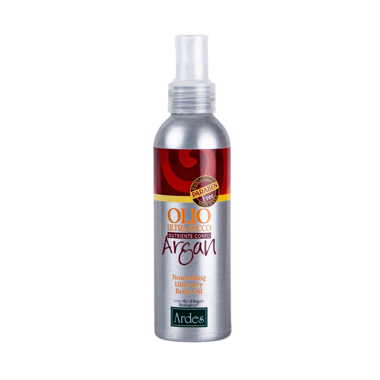 Ardes Cosmetici Ultra Droog Argan Olie Spray 150 ml is een product dat is ontworpen om een diepe hydratatie en een glanzende afwerking op de huid te bieden. De zijdezachte en lichte formule wordt onmiddellijk opgenomen, waardoor een vette sensatie wordt vermeden.