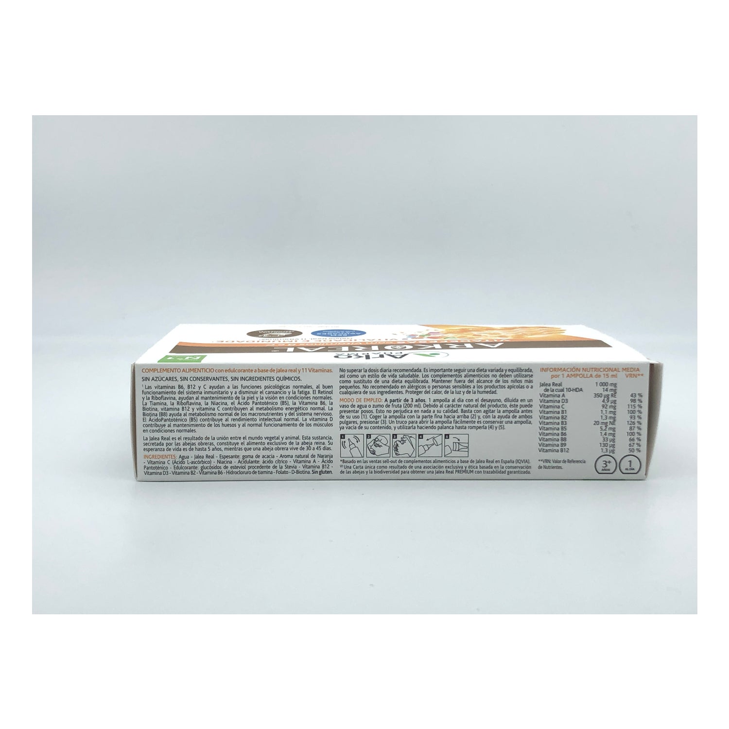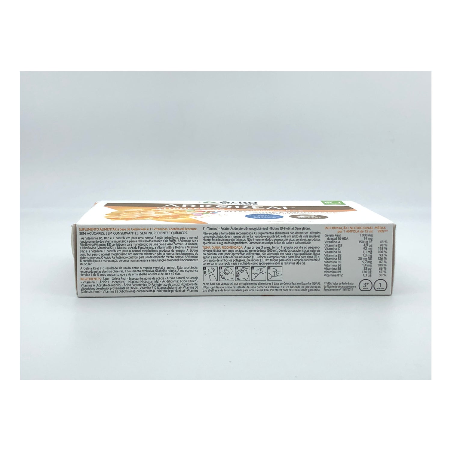 Arkoreal-vitaminegelei zonder suiker is een voedingssupplement dat het lichaam extra energie geeft met zijn koninklijke jelly-basis. Deze koninginnengelei wordt gepresenteerd zonder suiker en met een verminderde calorie-inname (4 calorieën per ampul) .