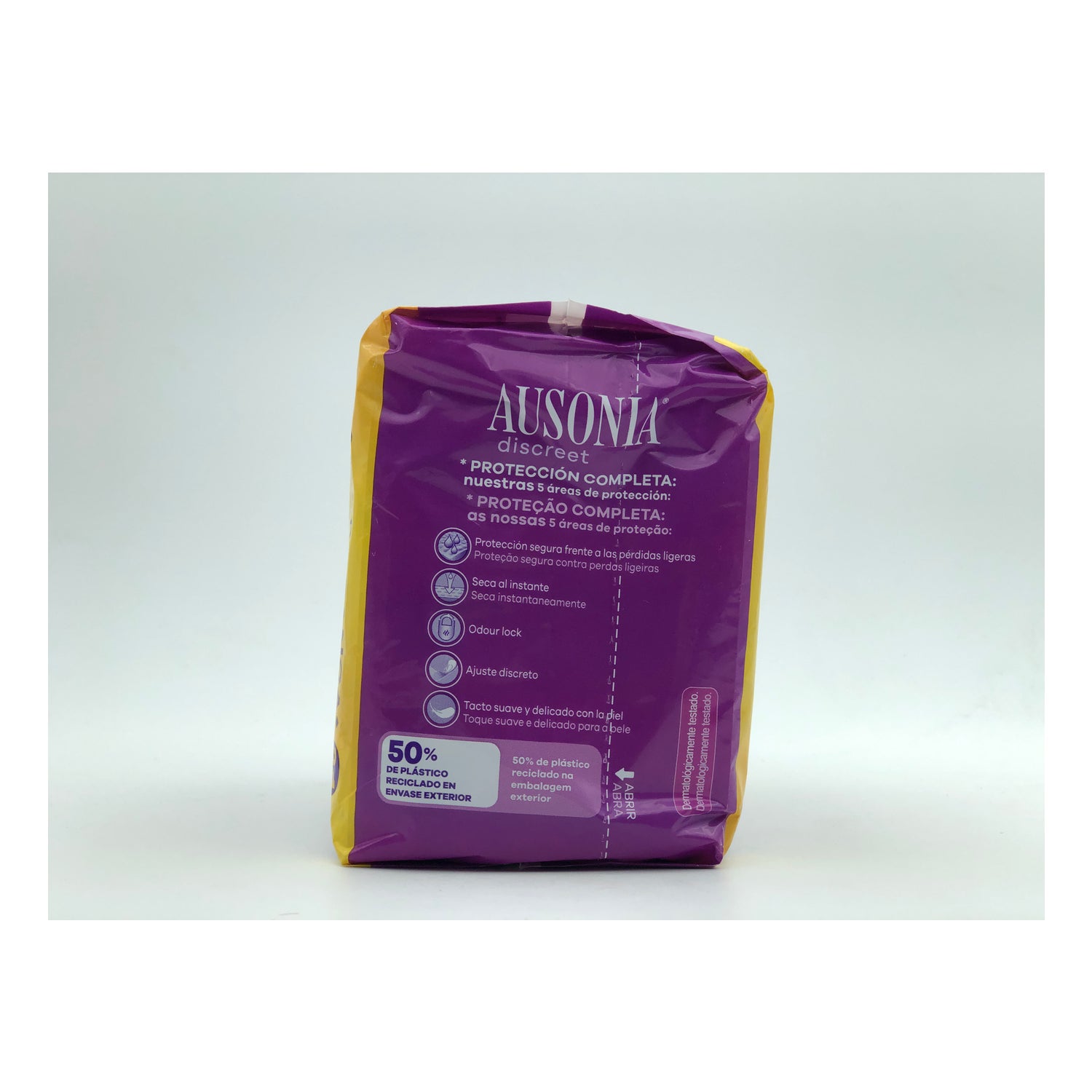 Ausonia Discreet is perfect voor het absorberen van urineverlies en het elimineren van slechte geuren. Dankzij de dubbele kern en het OdourLock-systeem blokkeert het vocht en neutraliseert het de geur snel en efficiënt. Een licht geparfumeerd, dun, discreet en flexibel kompres dat zich perfect aanpast aan het lichaam! Ideaal voor oudere of zwangere vrouwen , je kunt ze na gebruik sluiten om ze naar eigen goeddunken te verwijderen.