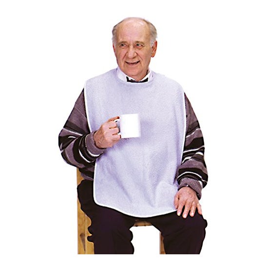 Hulpmiddelen Dynamisch Frottee Slabbetje is een ideale oplossing om tijdens het eten mensen met beperkte mobiliteit te beschermen. Dit slabbetje, vooral nuttig voor ouderen of patiënten met motorische problemen, houdt de kleding schoon en droog, wat de hygiëne en het dagelijks welzijn bevordert.