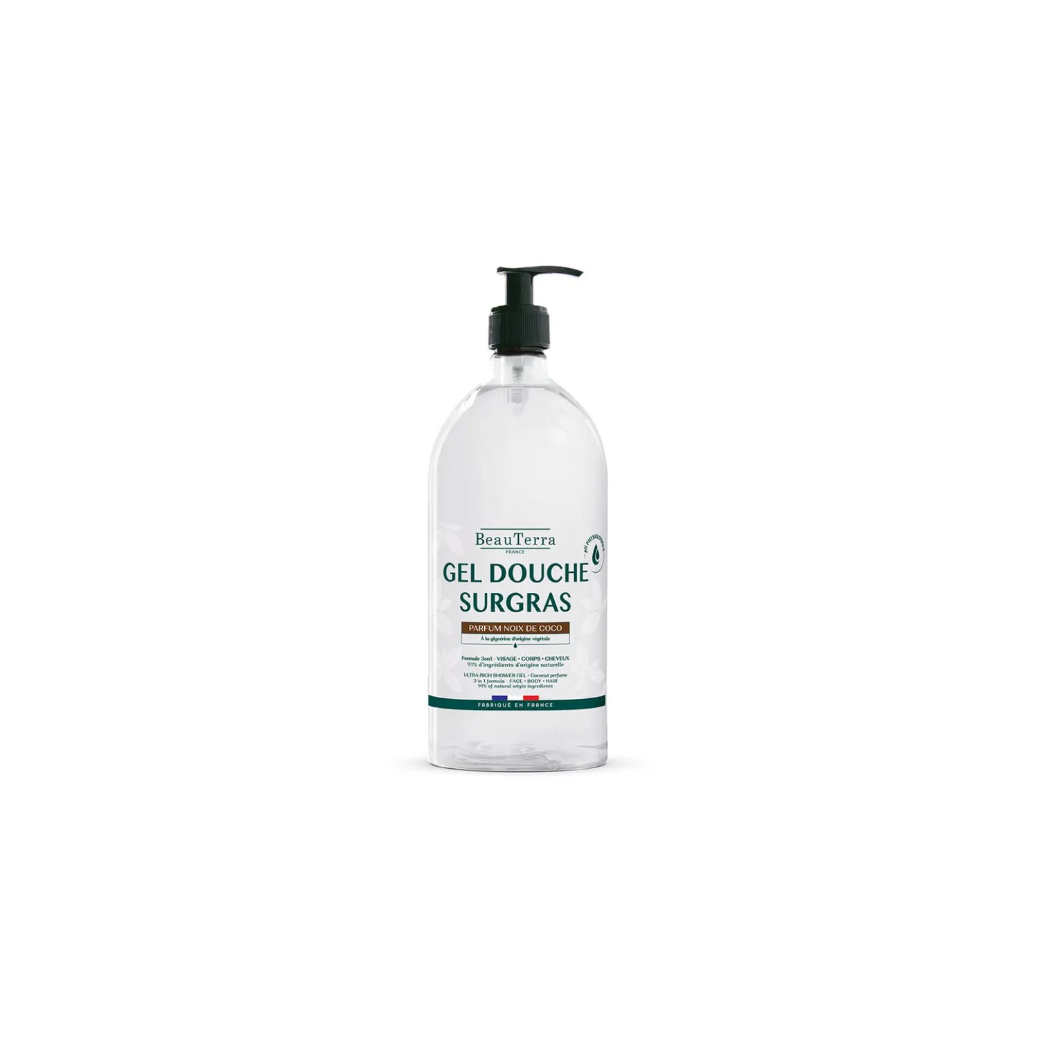 Beauterra Douchegel Surgras Coco 1000 ml is een 3-in-1 douchegel voor het reinigen van gezicht, lichaam en haar zonder uit te drogen. Het is bedoeld voor het hele gezin, inclusief gevoelige huid en kinderen vanaf 3 jaar. Het geeft een exotische geur van kokosnoot.