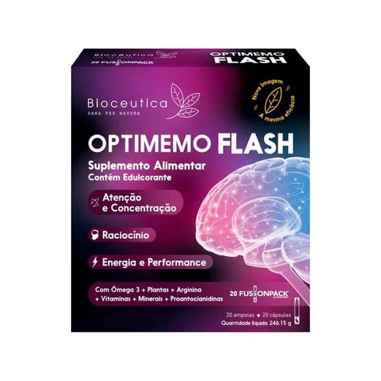 Bioceutica Optimemo Flash is een voedingssupplement dat is ontworpen om het geheugen en de concentratie te verbeteren. De formule werkt snel en bevordert de aandacht en het snelle redeneren. Dit product verbetert niet alleen de hersenprestaties, maar beschermt ook de hersenen en het centrale zenuwstelsel tegen de effecten van dagelijks stress.