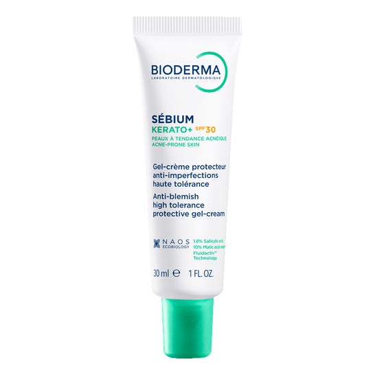 Bioderma Sébium Kerato+ SPF30 30ml is een beschermende anti-onzuiverheden gel-crème die werkt op puistjes, mee-eters en post-acne littekens.