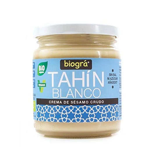 Het is een biologische sesamzaadpasta. Het is heel eenvoudig te maken en geeft een heerlijke smaak aan veel culinaire bereidingen. Het is handig om het te emulgeren met een beetje water om het meer verteerbaar te maken, waardoor het een romige pasta wordt. Het bevat onverzadigde vetten (ongeveer 55%), waaronder lecithine (meer dan soja), ijzer, eiwitten, calcium, zink, vezels, etc. Het is echter belangrijk om te onthouden dat het een zeer calorisch product is en dat je er niet te veel van moet consumeren. Bewaar op een koele en droge plaats.