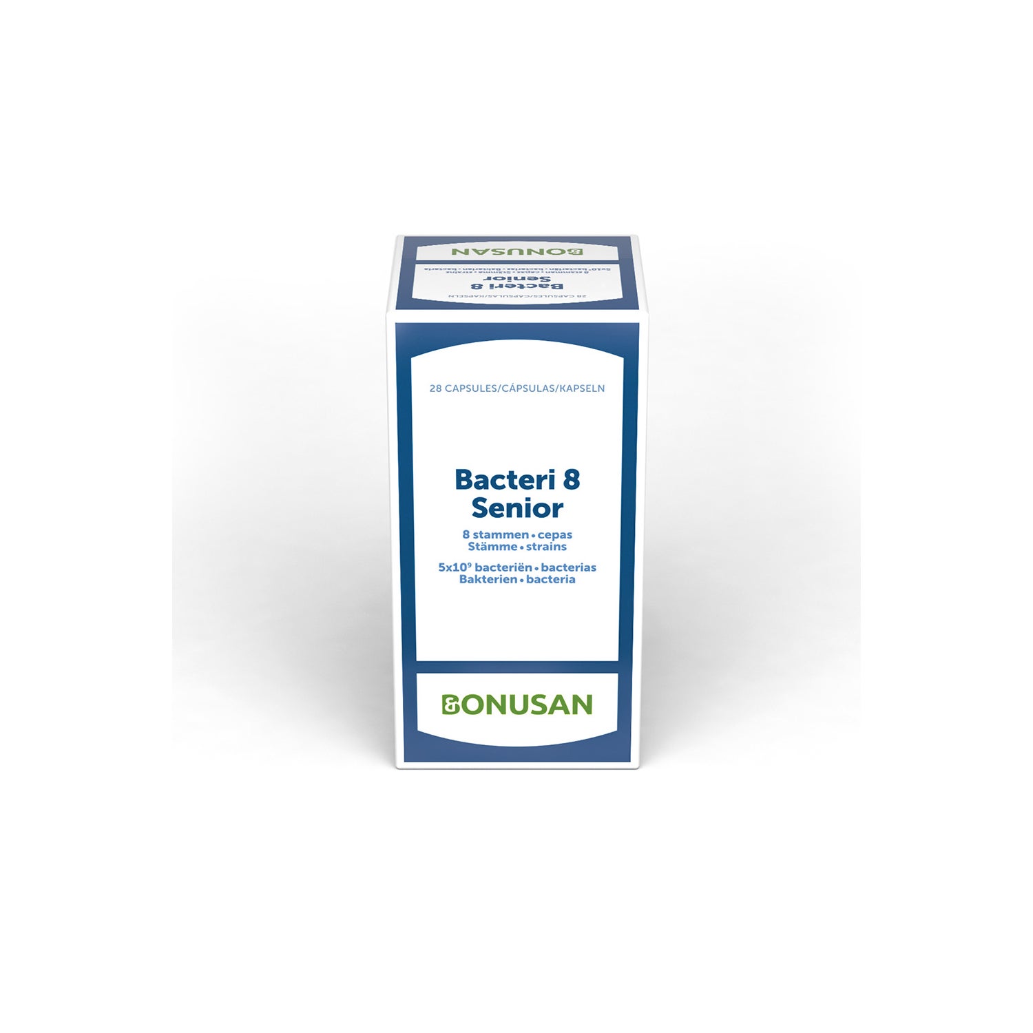 Bonusan Bacteri 8 Senior 28caps is een voedingssupplement met 8 bacteriestammen speciaal geformuleerd voor oudere mensen.