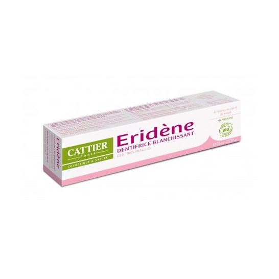 Cattier Eridene Tandpasta Gevoelig Tandvlees 75 ml is een tandpasta die helpt om tanden en tandvlees sterk en gezond te houden en bevat natuurlijke souak (gedroogde zwarte walnootbast).